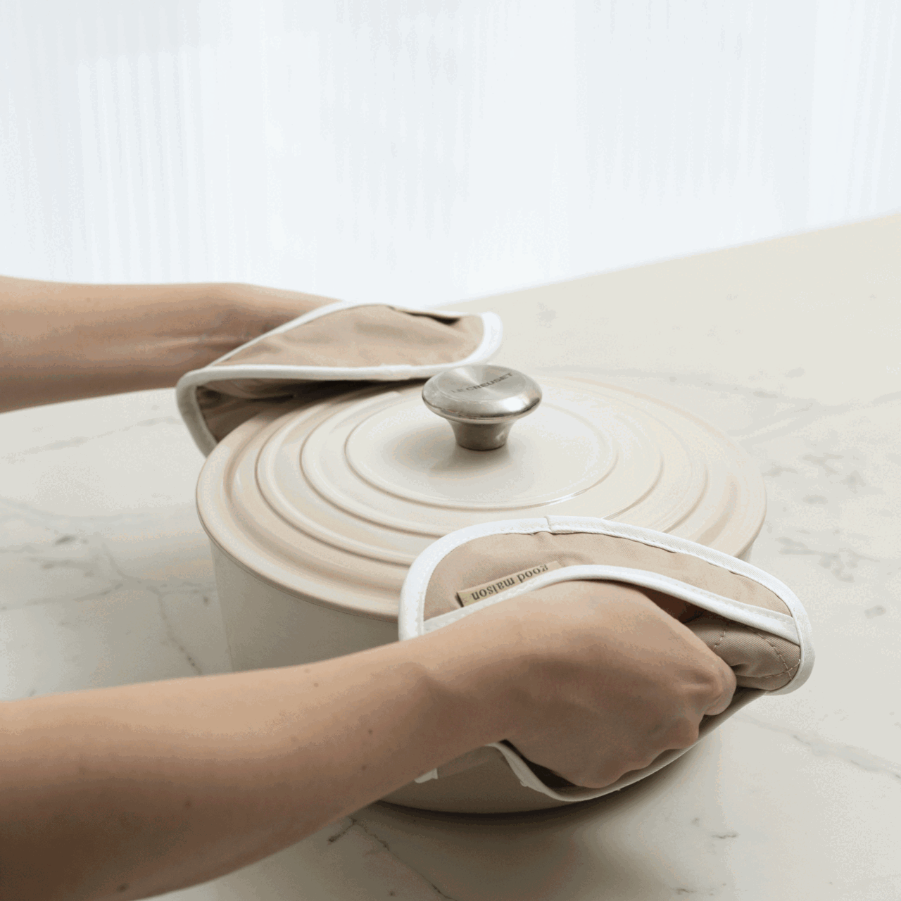 Our Pot Holders are ideal for grabbing onto hot knobs and handles on the stove. If you're looking for a longer alternative to handle larger baking trays, we recommend the Double Oven Mitts.